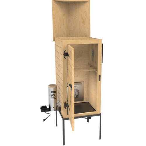 - Vše v jednom kvalitním setu - udírna z výběrového, leštěného dřeva, otevírací stříška, stabilní kovový rám, topeniště, rošt, trámy a háky, vyvíječ kouře s elektrickým čerpadlem.