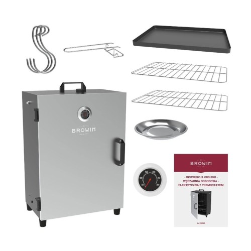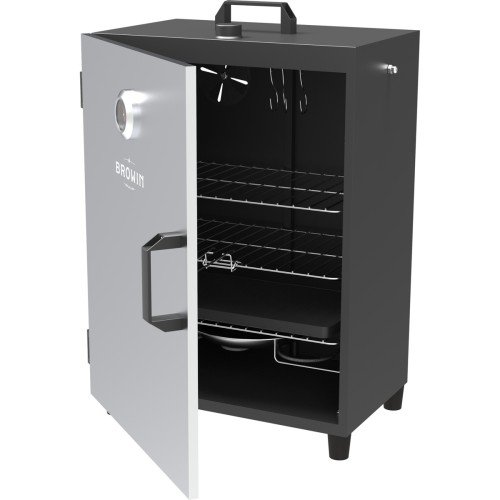 BROWIN Nerezová automatická udírna s termostatem - Elektrická udírna s termostatem - model s vysokým výkonem (topení 1600 W), umožňujícím regulovat teplotu uzení.