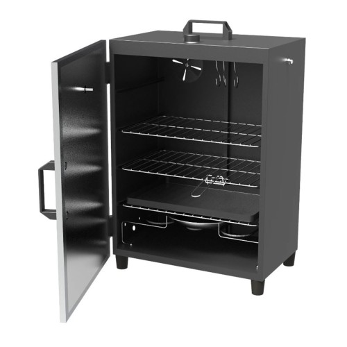 - Vysoký výkon - Udírna má zabudované vysoce výkonné topidlo 1600 W a termostat, díky kterému lze snadno udržovat nastavenou teplotu v udírně i při mínusových teplotách okolí