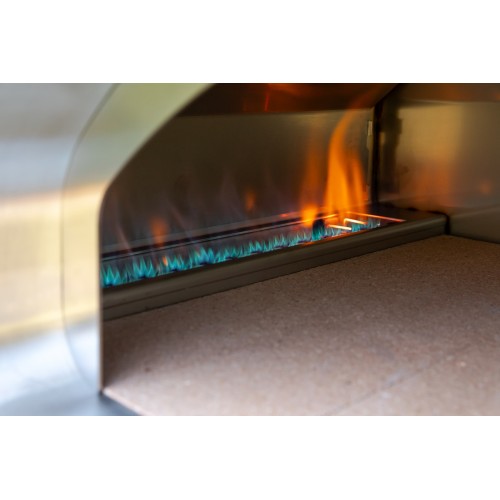 Výkonná rodinná pec s pečící plochou 70 x 50 cm umožňující topení plynem nebo dřevem. Dokonalé zaoblení klenby usnadňuje cirkulaci vzduchu. Fontana je jediný výrobce, který umisťuje plynový hořák na dno, nikoliv na stranu trouby, čímž dochází k ideálnímu rozptylu tepla v kratším čase. Důmyslný odvod kouře nutí teplo zůstat delší dobu v pečící komoře, čímž dochází ke snížení spotřeby plynu. Toto vše jsou výsledky špičkového inženýrství, které odpovídá tradici italské kuchyně.