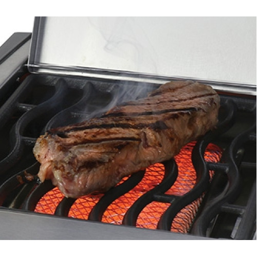 • Infračervená SIZZLE ZONE™: Boční keramický hořák dosahující teploty až 800 °C. Ideální pro bleskové zatažení steaků, které zůstanou neuvěřitelně šťavnaté.