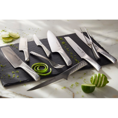 • Všestrannost bez hranic: Jeden nůž na 90 % všech kuchyňských prací – krájení, sekání, plátkování i drcení česneku plochou čepele.